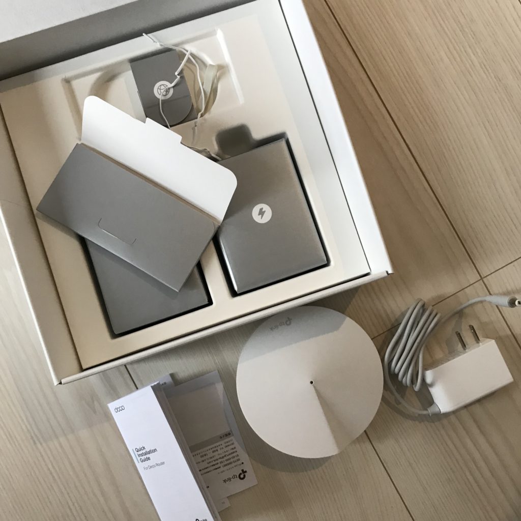 箱を開けるとシンプルな中身が出てきます。予めスマホにTP-Linkの専用アプリをダウンロードしておく必要があるため、モバイル通信など他のネット環境が無い方はご注意ください。