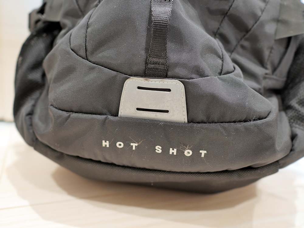 1日分の荷物がしっかり入る26Lの容量をしっかり支えてくれます。またロゴとHOTSHOTは刺繍で文字が入っているため印刷と違いボロボロ落ちる心配がないのも嬉しい点。